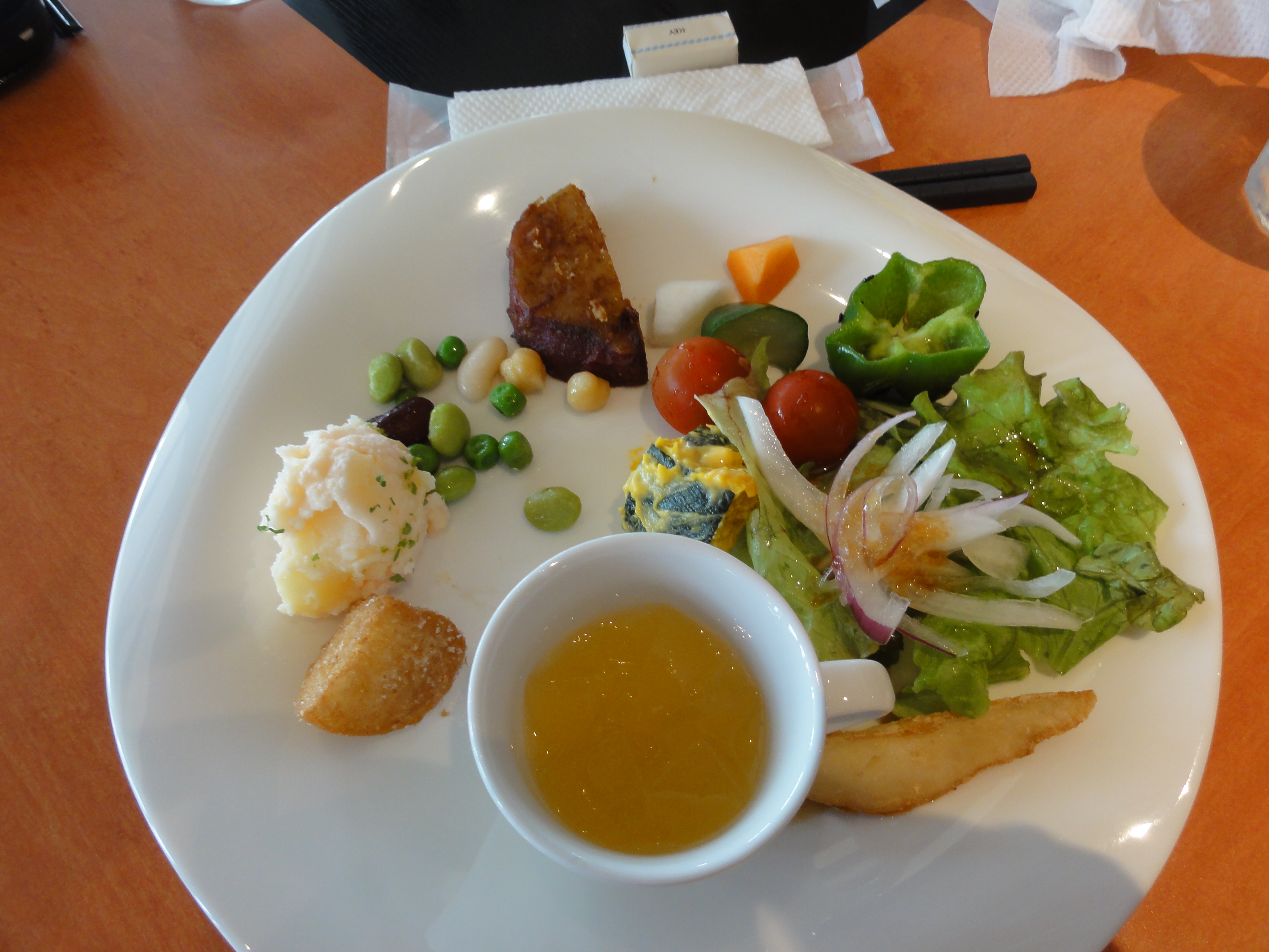 前菜の野菜がバイキングで美味しい。!野菜は自家製とか。