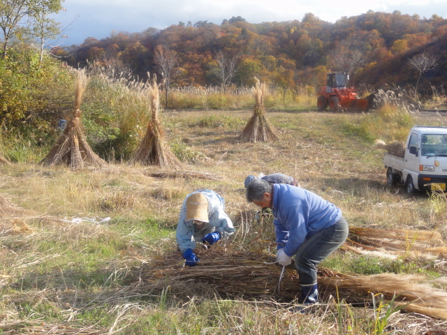 じちゃとばっちゃがなんと萱刈してるう。あまりの偶然にビックリ。