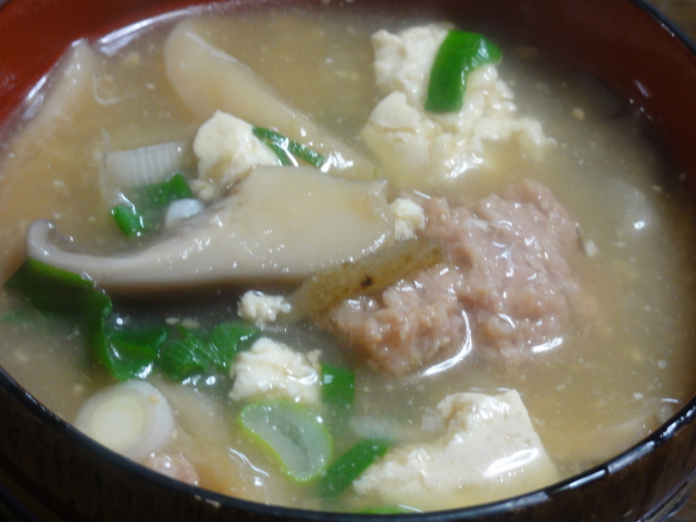 団子汁もつくりました。ひらたけ、舞茸、ムキタケが入ってます。生姜をいれからだもポカポカ!