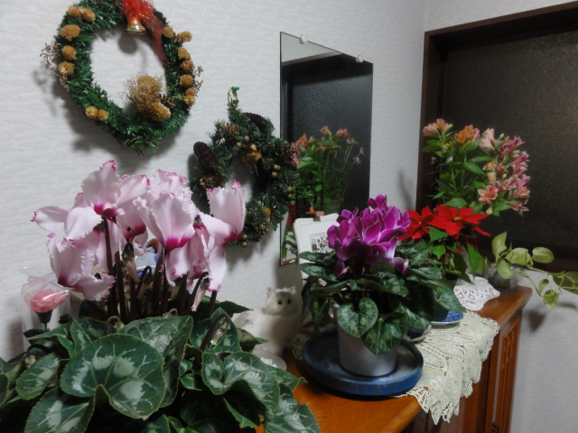 近所のおばちゃんにも、ピンクのシクラメン頂き、賑やかに華やかになりました。