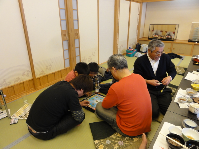 ご馳走食べて、ドンジャラで遊ぶ男ども、、、とちびっ子。