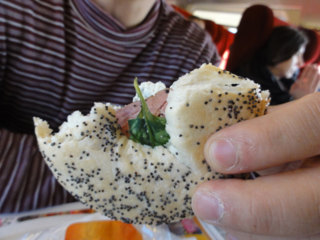 タリスに乗ったら軽食出るんだって!という娘の情報で食事抜きで乗車。