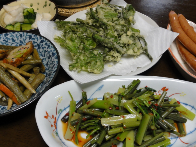 ウドの新芽の部分は、天ぷらに。山のウルイはやっぱ柔らかいね。