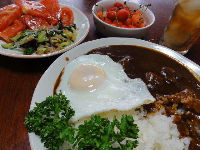 お父さんも少しは料理するのね(笑) 今年は食べられないと諦めてたさくらんぼだけど、そういえばドイツはさくらんぼの国だったよ。お菓子とかお酒とかよくさくらんぼ使われるしね。最近スーパーで量り売り見つけて初さくらんぼ食べたよー^^日本よりかなり安い!(アメリカンチェリーみたいな黒めので酸味強いけど‥)