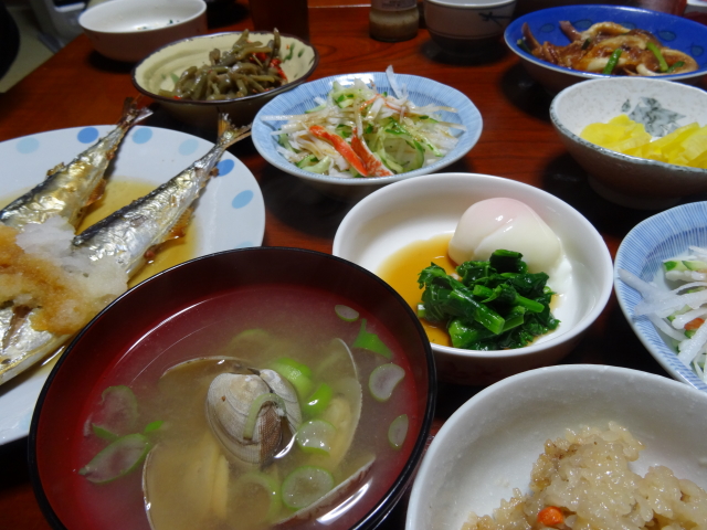 あさりの味噌汁のリクエスト。温泉卵はバウンドの参加賞(笑)