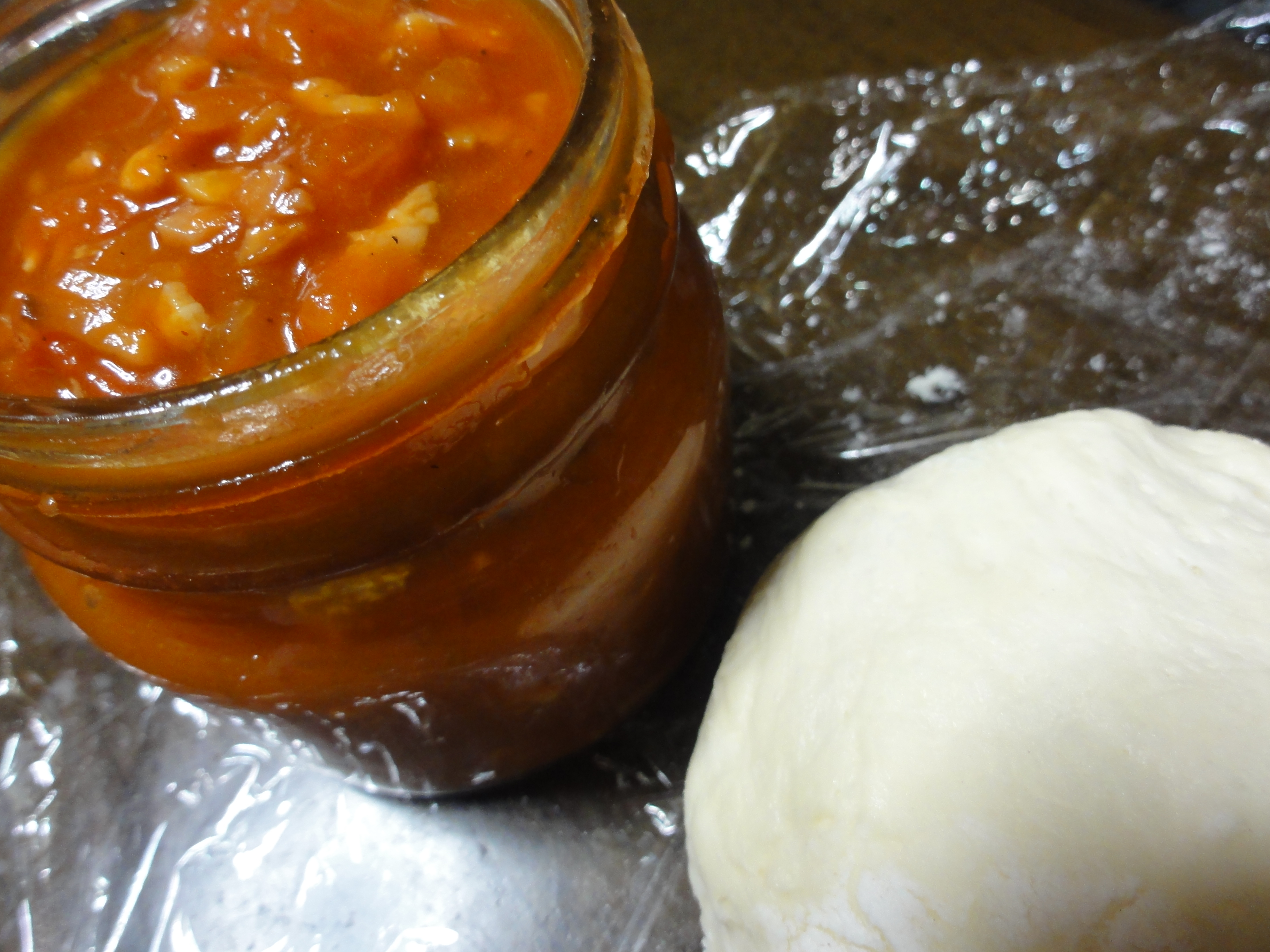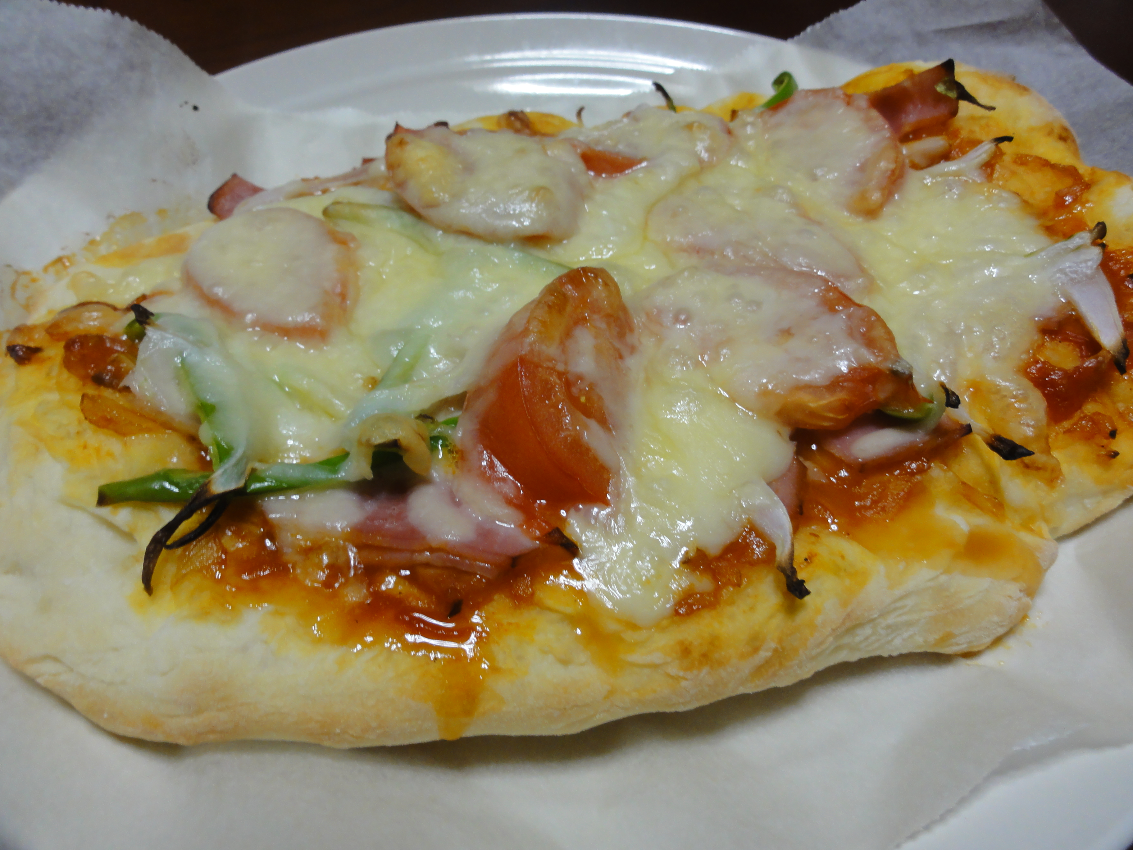 クッキングペーパーが少ししかなかったので、それに合わせた形のピザに、、、