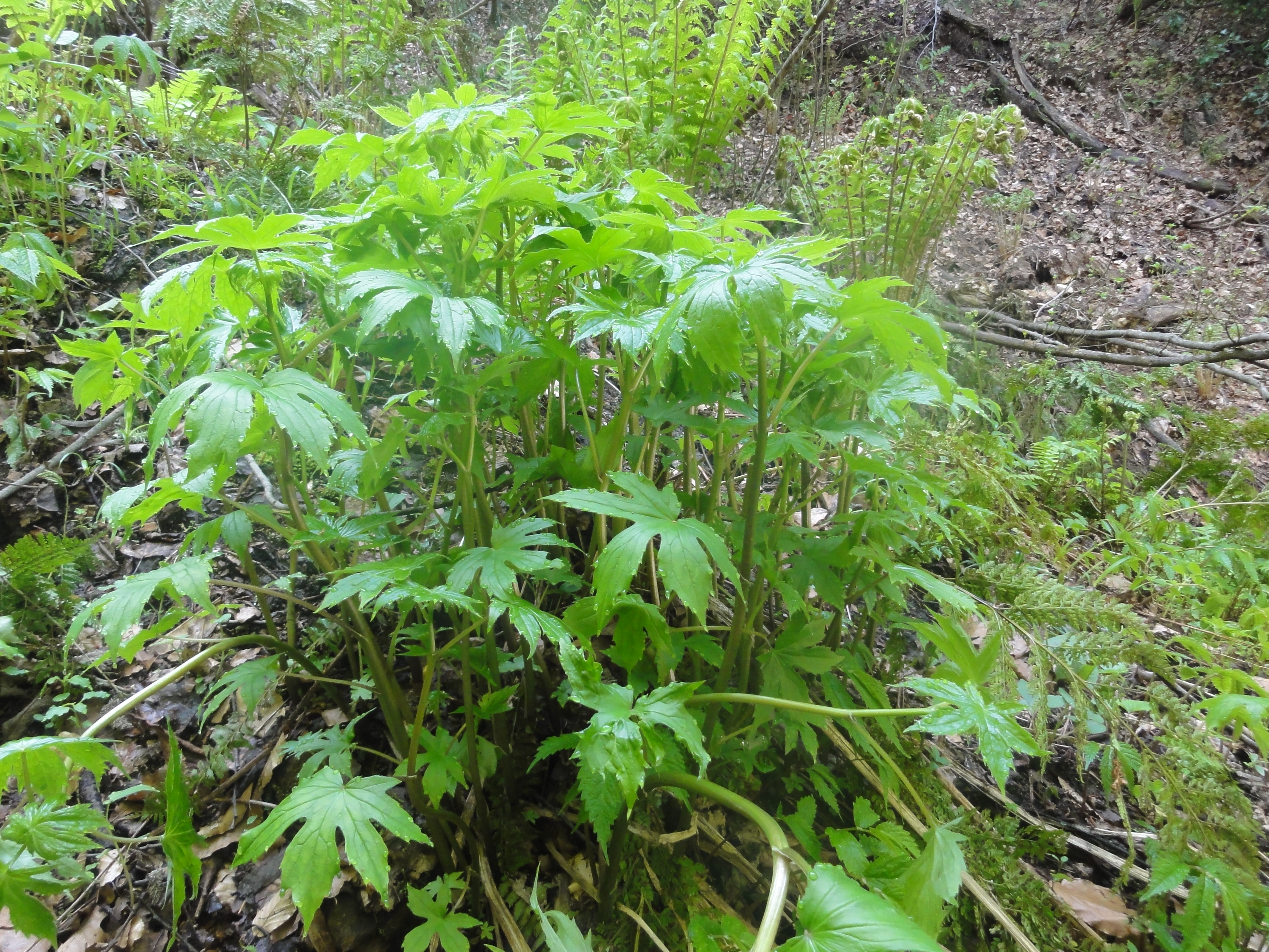 葉がちょうどモミジの形して、葉が開くまで傘のように垂れてることからモミジガサと呼ばれてます。