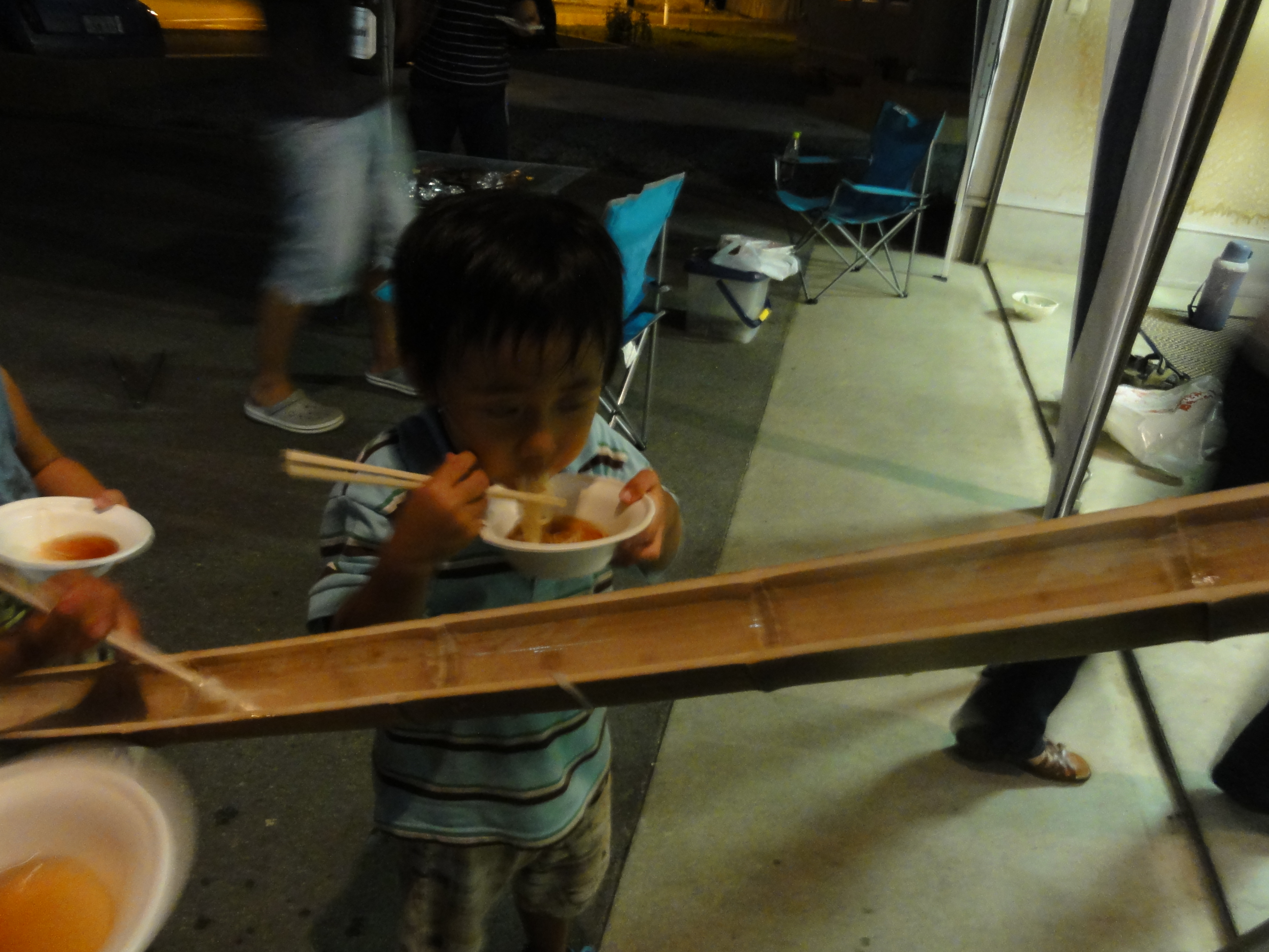 その夜は兄の家でバーベキューとちびっ子の流しそうめん!