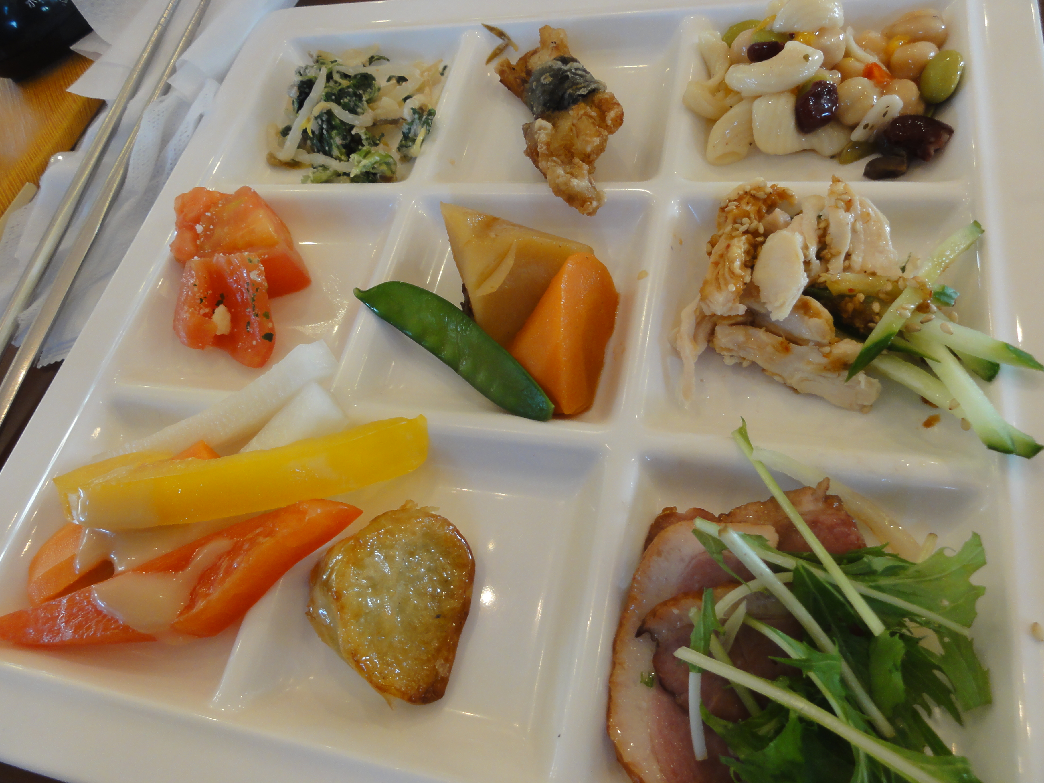 パスタやピッツァを注文してから、バイキングでいろいろのお惣菜を食べて待ってるんです。