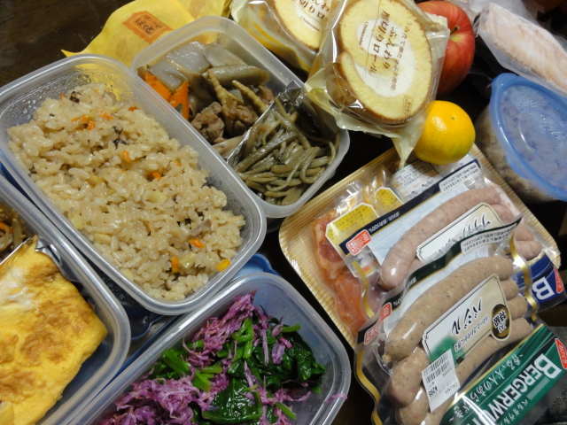 何もお手伝い出来ないので、せめて手作りのものと、少しの食材を。