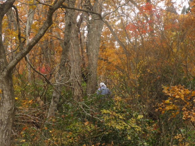 夫が夢中でムキタケ採りするも、疲れてきた私は見学!
