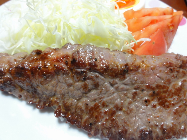 寒さに勝つためにも牛ステーキでも食べて体力全開。