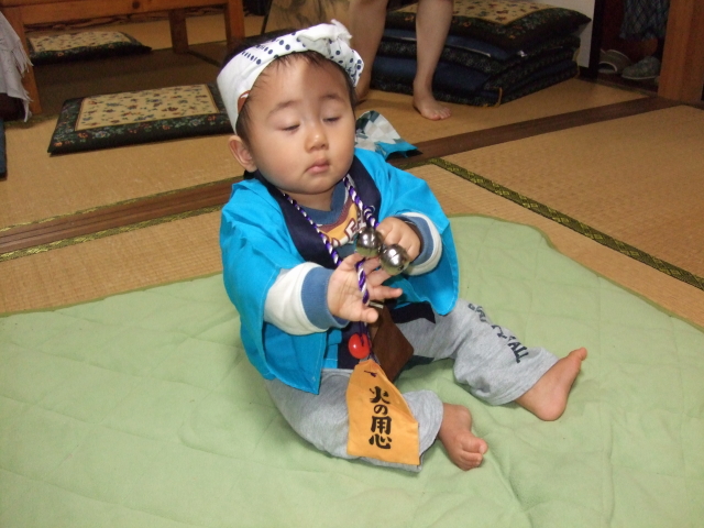 ハッピきて居眠りの、いまでは六歳になる孫っち!どことなく似てる!