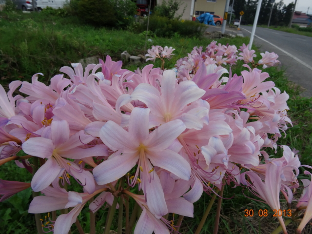 散歩中に見つけた花。我が家にも少しあるが、「リコリス」というらしい。