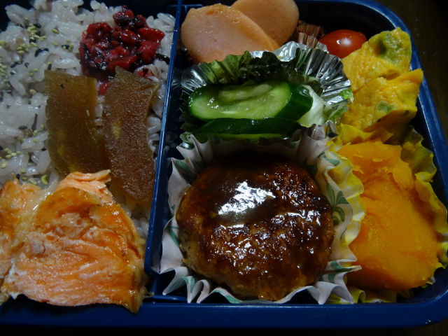 ワラビのおかかと焼き鮭の和物?昨日の残りのシチュウかあ。