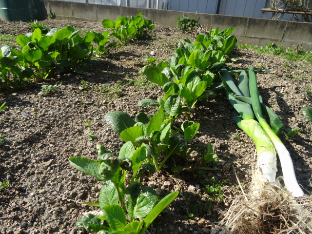 我が家の畑で去年植えたネギ収穫!小松菜も一冬越して収穫出来そう。