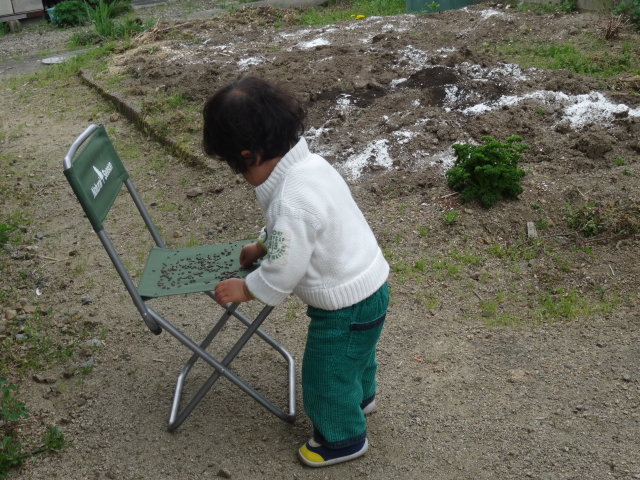 この間来た時、もう帰るころに、せっせと石ころ拾って集める孫っち。