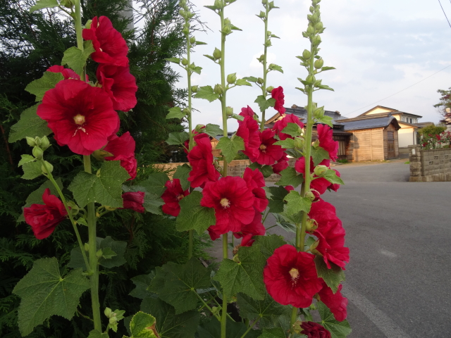 散歩してたら、よそん家の庭の葵の花が、、、鮮やか!