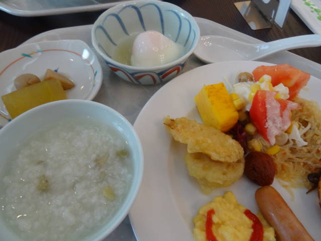 朝はホテルのバイキング、、、風呂は温泉だし最高!
