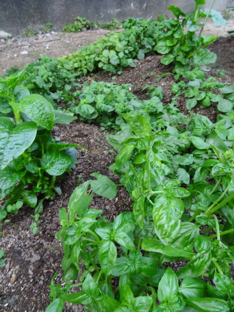 バジルは花咲きそう!紫蘇は去年のたねでやたらあちこちに!