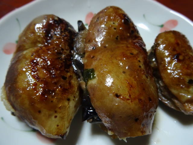 あけびの中身は、ひき肉、舞茸、味噌など、、、