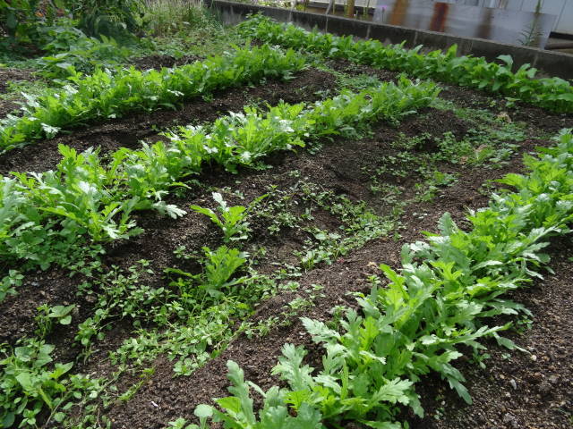 ぐずぐずしてて、遅く植えた春菊が少し大きくなりました。
