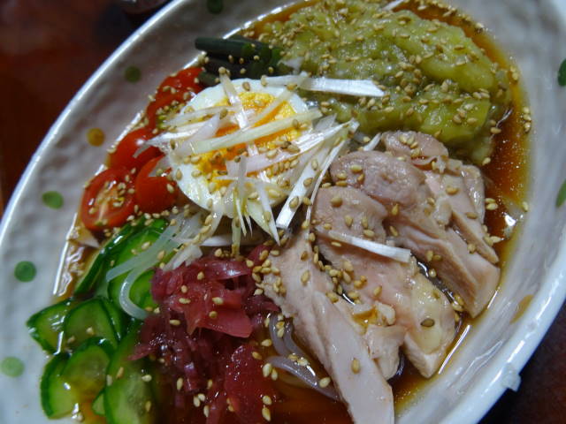 頂いた冷麺、家にあるもので、、、初めて食べたとき、この麺の弾力が無理!と思ったんですが、、、、