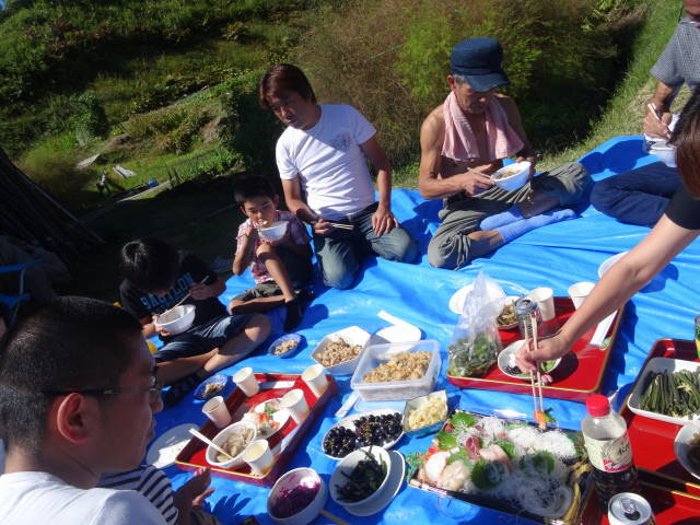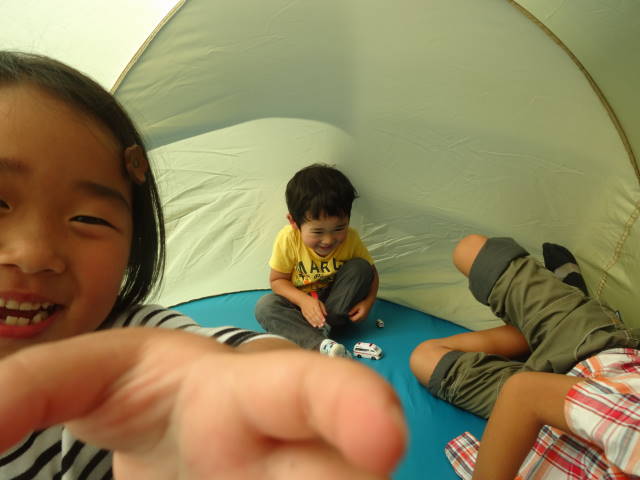 チビッ子はテントでキャンプ気分。芋煮も食えよ!