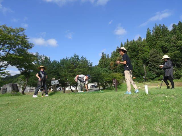 白川荘に泊まり、パークゴルフを久しぶりに、、、うちのシニア達、さまになってるわ。
