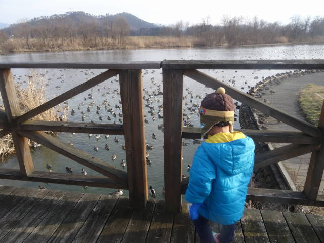 よく見ると、マガモきれいです。でもあまり近づけないね。