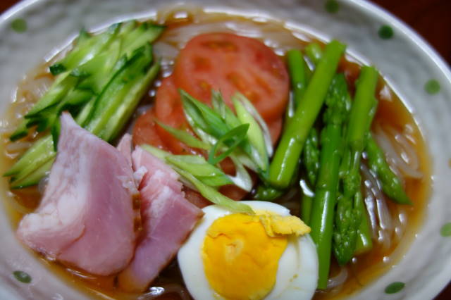 友達に冷麺頂き、早速有り合わせのトッピングで、、、うまい!