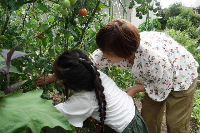 帰りに立ち寄り、トマトやきうり採って食べました。