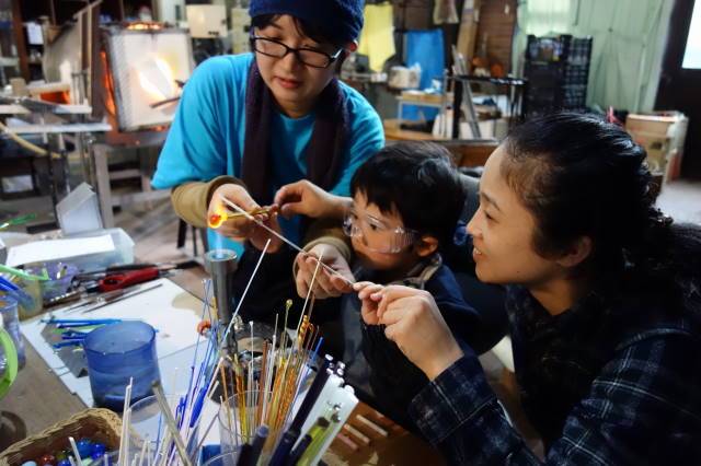ガラス玉作りの体験も出来て、良かったね!めちゃ緊張!!