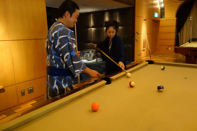 夜は嫁さんビリヤードに挑戦!センスあるかも。
