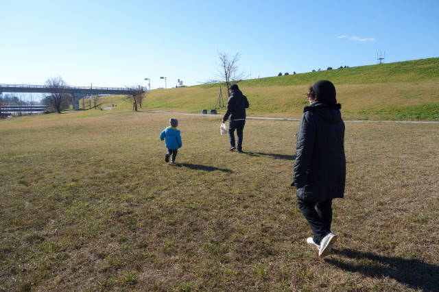 いつもの散歩道。スワン公園まで、ばっちゃんも頑張れ!