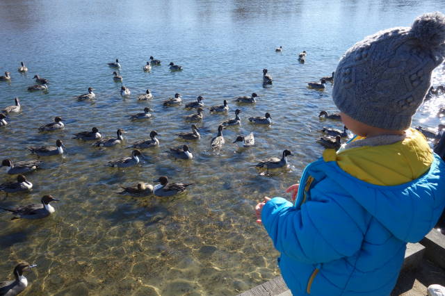 かも、かも、かもん!おせんべい時々お口に入れたり、、かもにあげたり。