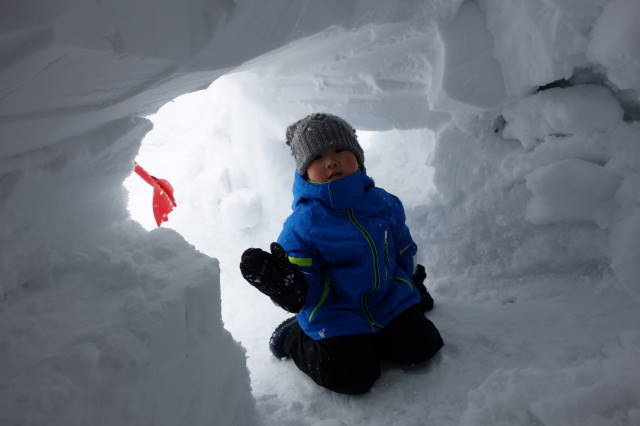 かまくらでカップヌードルランチ。やってみたかったそう。。。