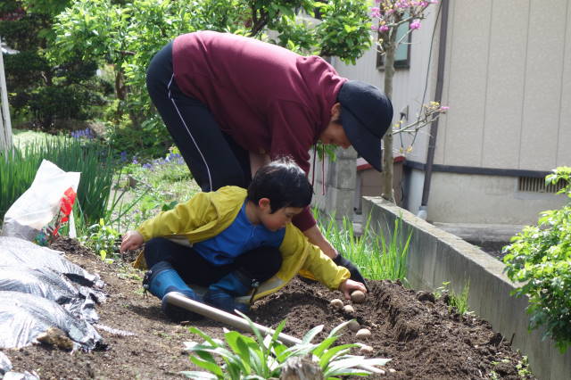 今一の天気でしたが、、ジャガイモ植えた!今年はだめもとで、「インカのめざめ」