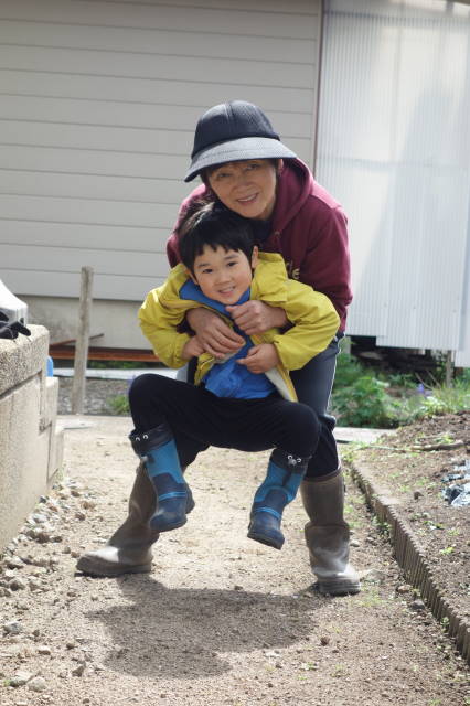 孫ちゃんと植えたジャガイモ、芽だしたよお!