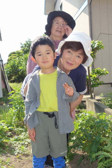 孫ちゃんたちがきましたよお。ついこの間植えたジャガイモも大きくなって。。